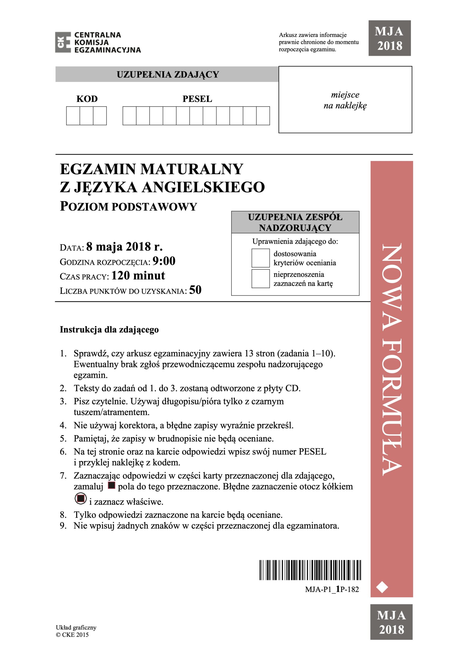 Matura z języka angielskiego poziom podstawowy – maj 2018