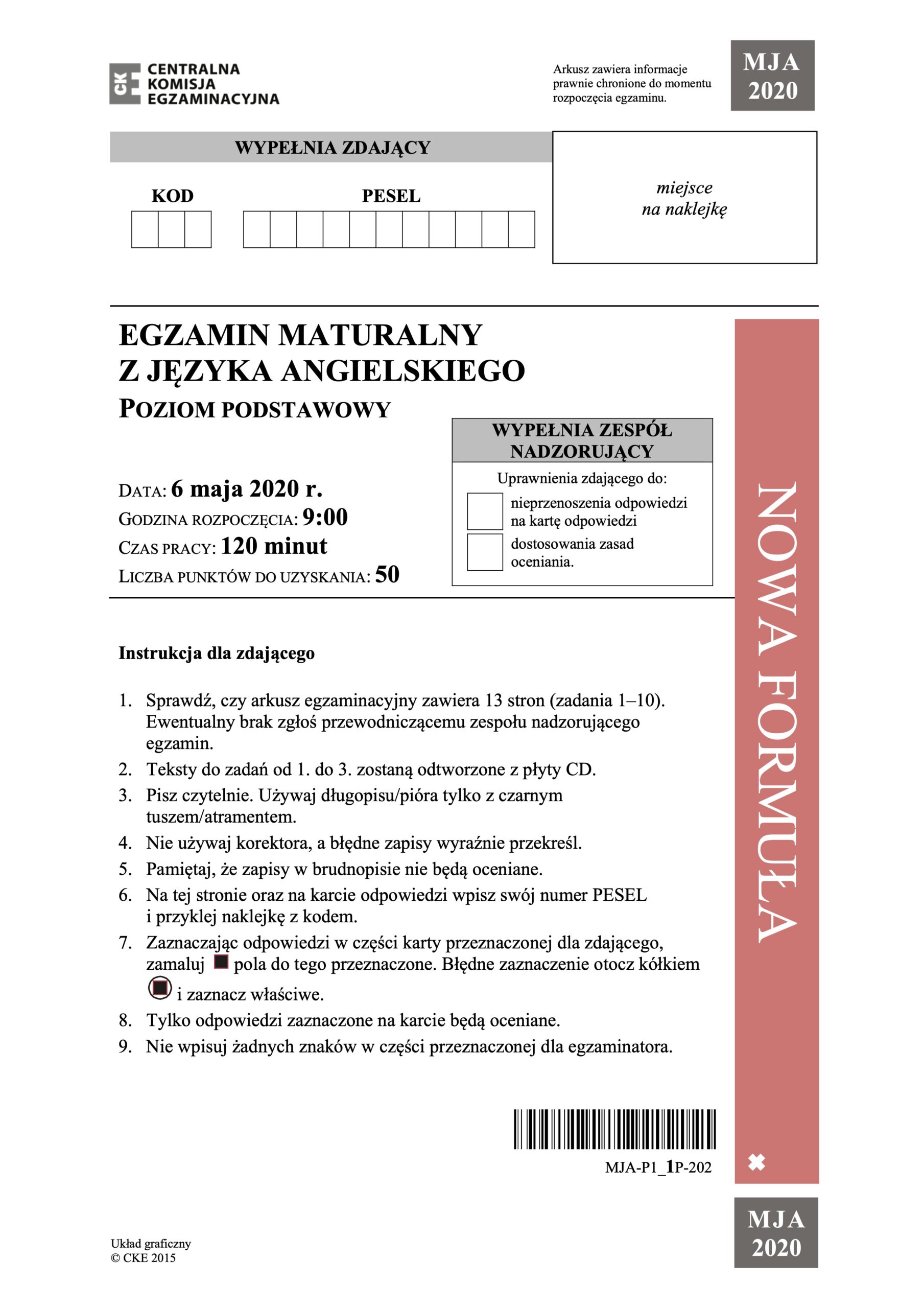 Matura z języka angielskiego poziom podstawowy – maj 2020