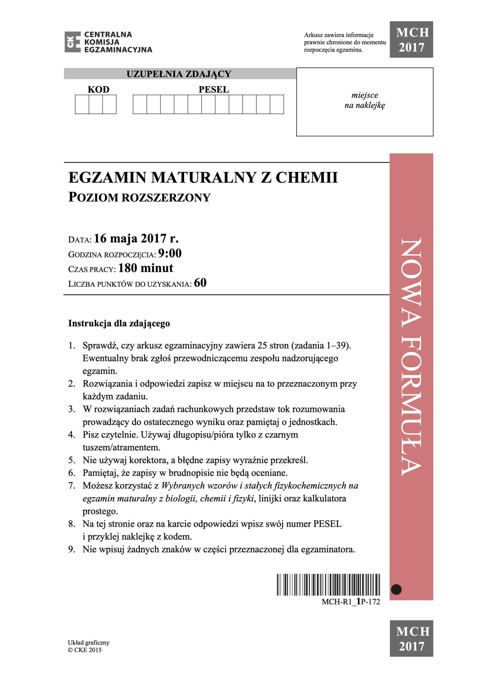 Matura z chemii – maj 2017