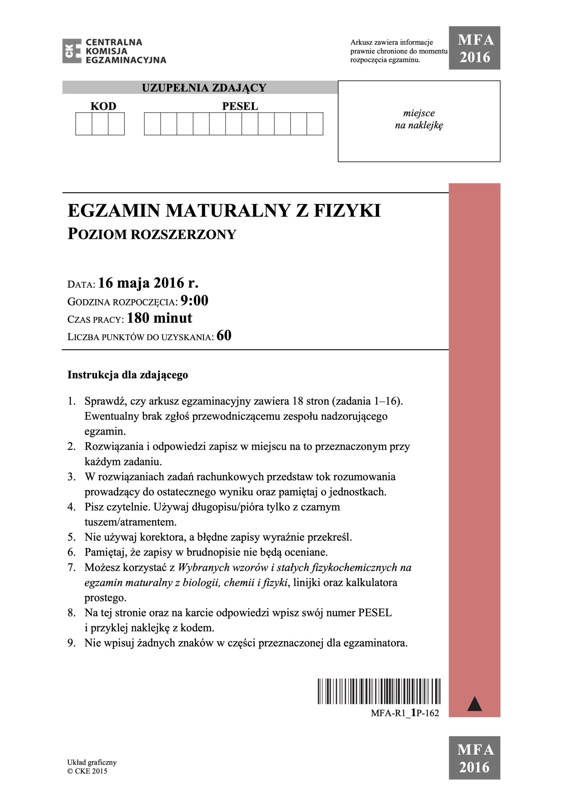 Matura z fizyki – maj 2016