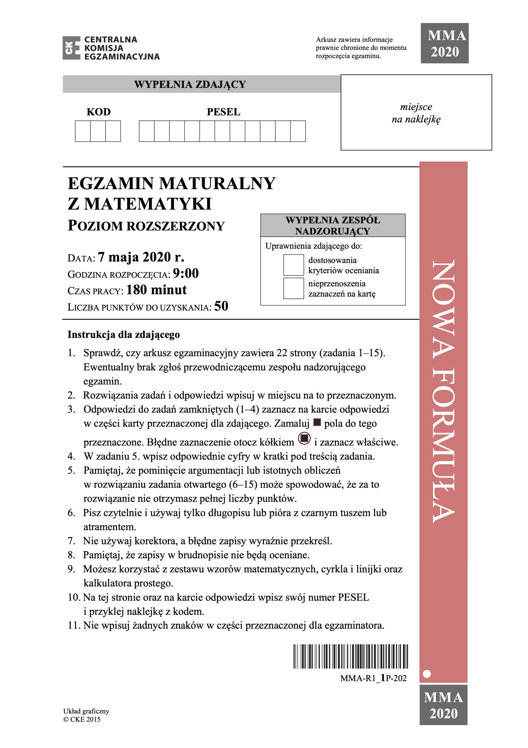 Matura z matematyki poziom rozszerzony – maj 2020