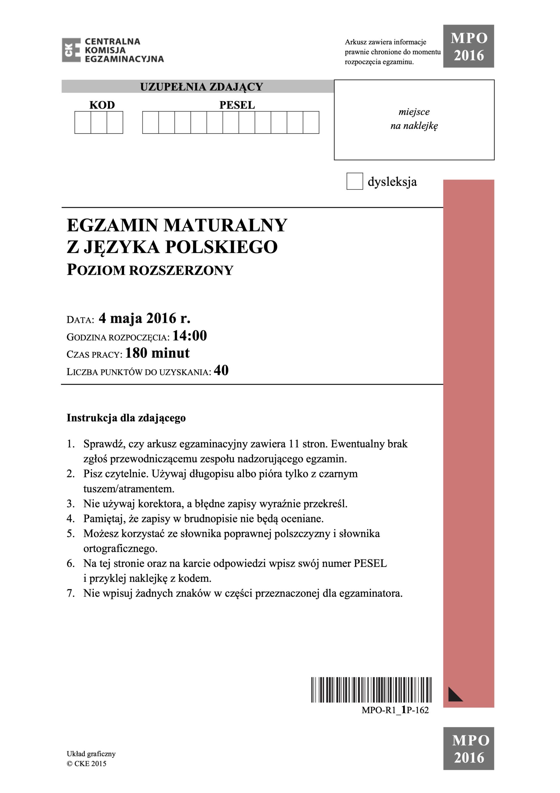 Matura z języka polskiego poziom rozszerzony – maj 2016