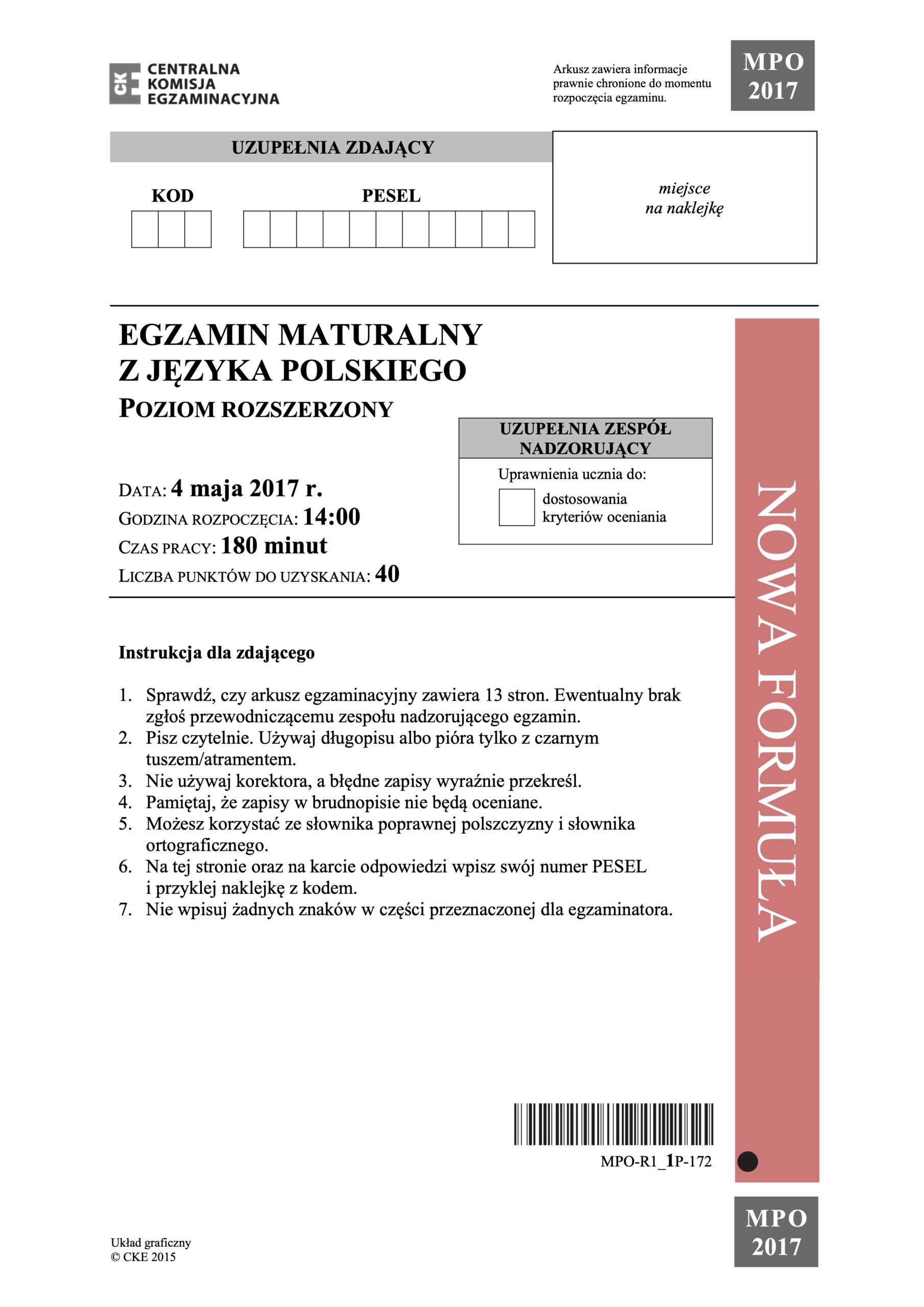 Matura z języka polskiego poziom rozszerzony – maj 2017