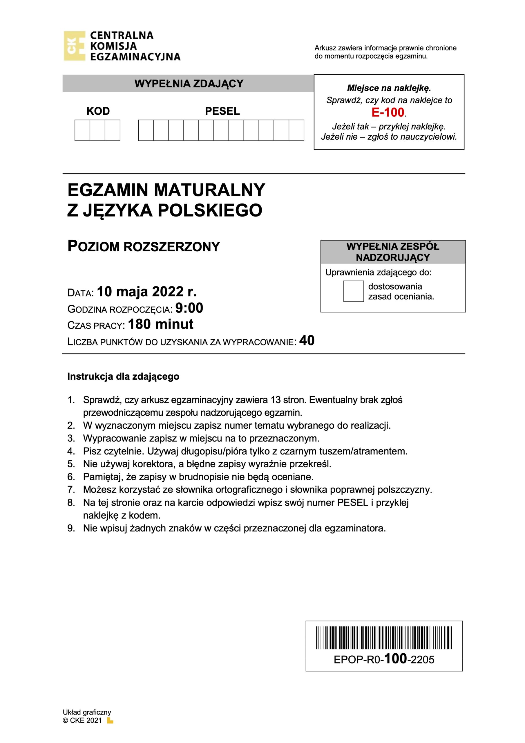 Matura z języka polskiego poziom rozszerzony – maj 2022