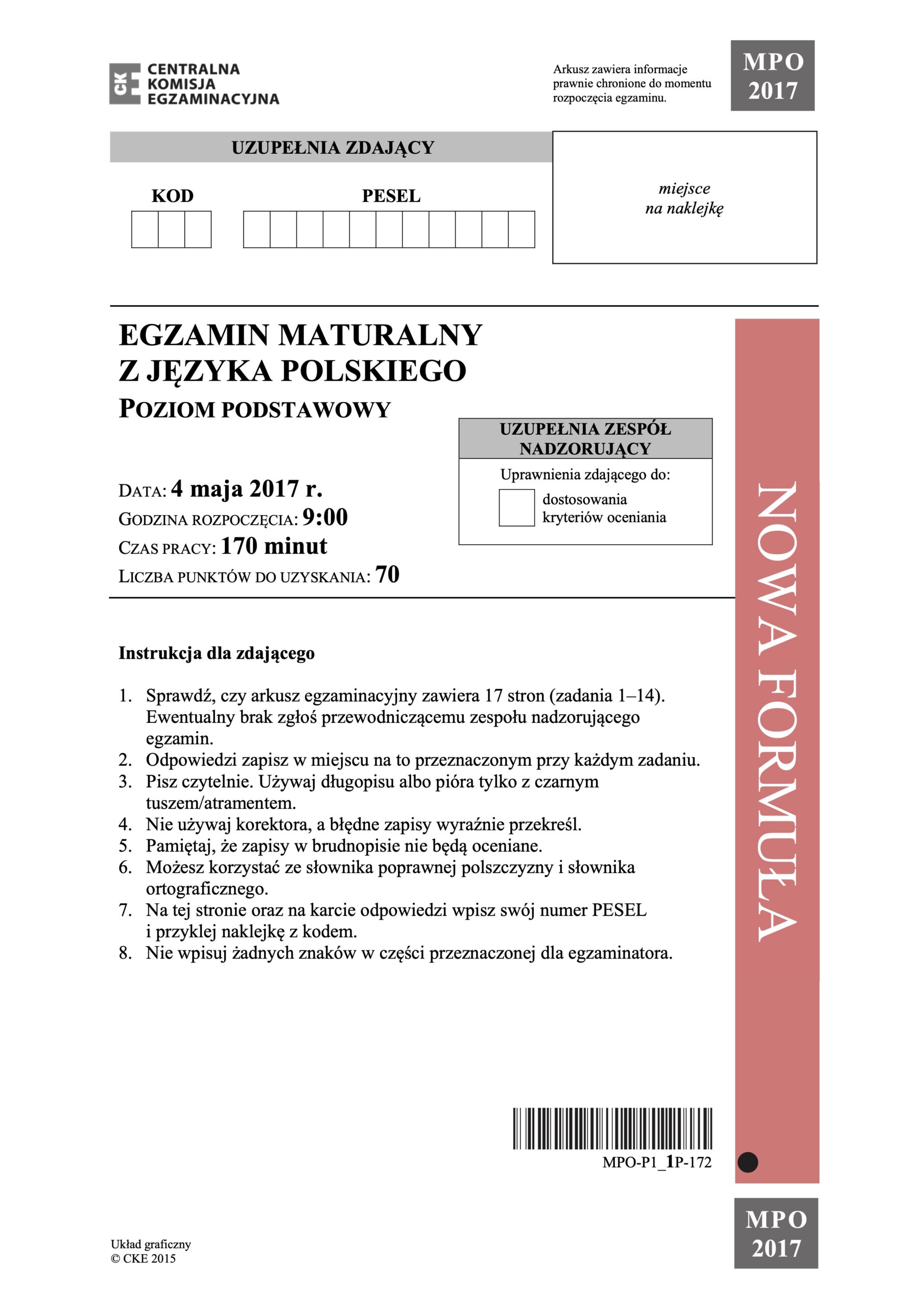 Matura z języka polskiego poziom podstawowy – maj 2017