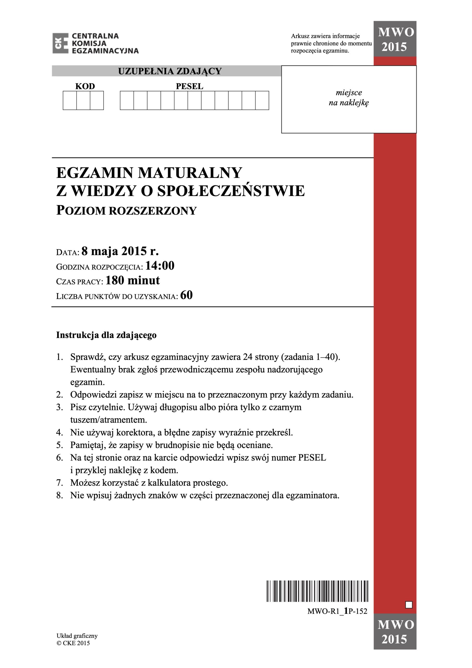 Matura z wiedzy o społeczeństwie – maj 2015